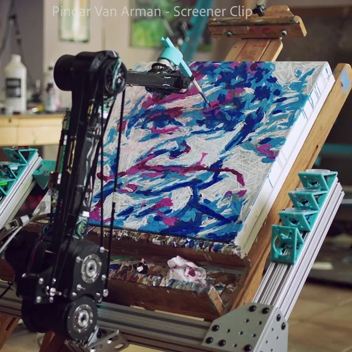 Autonymo.us Portraits are made by robots using this exact process. The robots use a brush, camera, and more than two dozen artificial intelligence algorithms to make marks, analyze the marks, and make more marks as the painting evolves from a blank canvas into a completed portrait. The A.I. used ranges from simple k-means clustering to some of the more complicated deep learning techniques including CNNs and GANs. More important than the specific A.I. algorithms used, however, is the fact that they are all competing for control of the brush and in doing so contributing to the direction of each Autonymo.us Portrait.